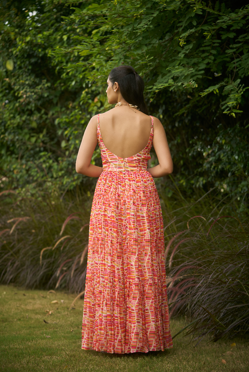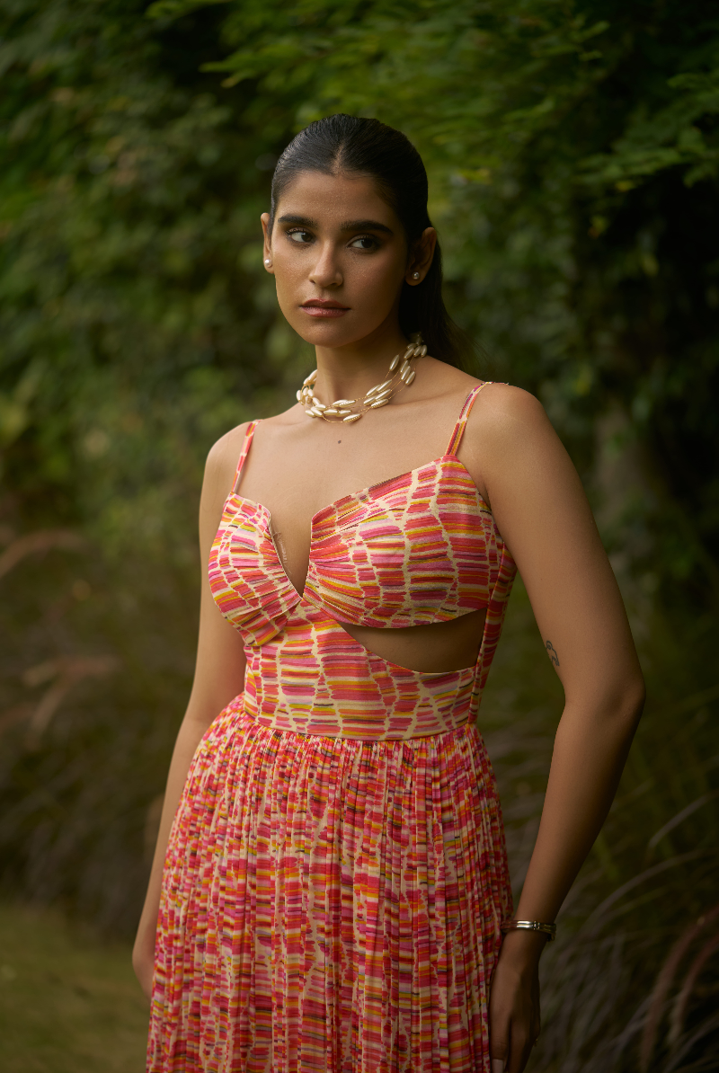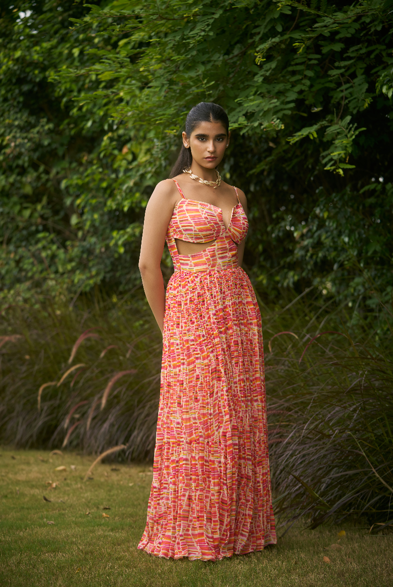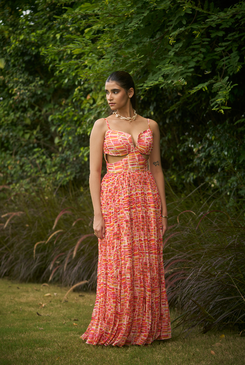 Multi color Georgette waist cut out Dress