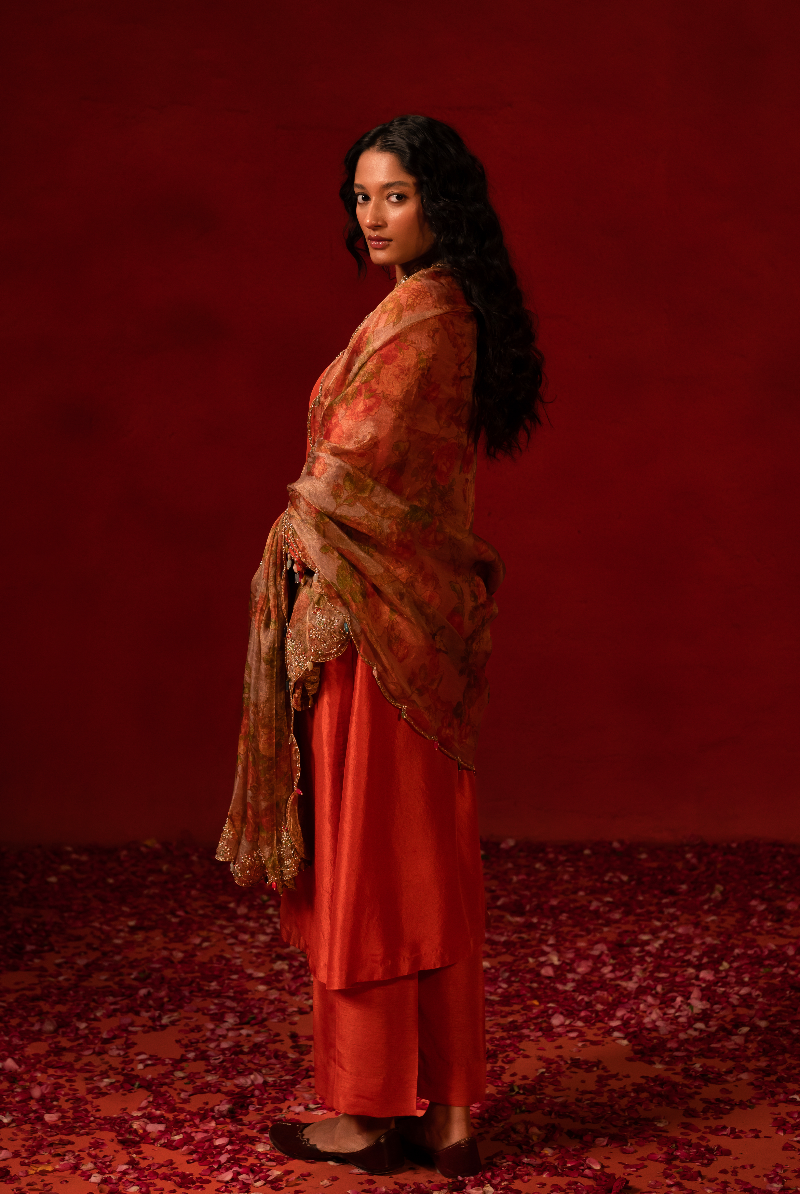 Rust organe handcrafted kurta set