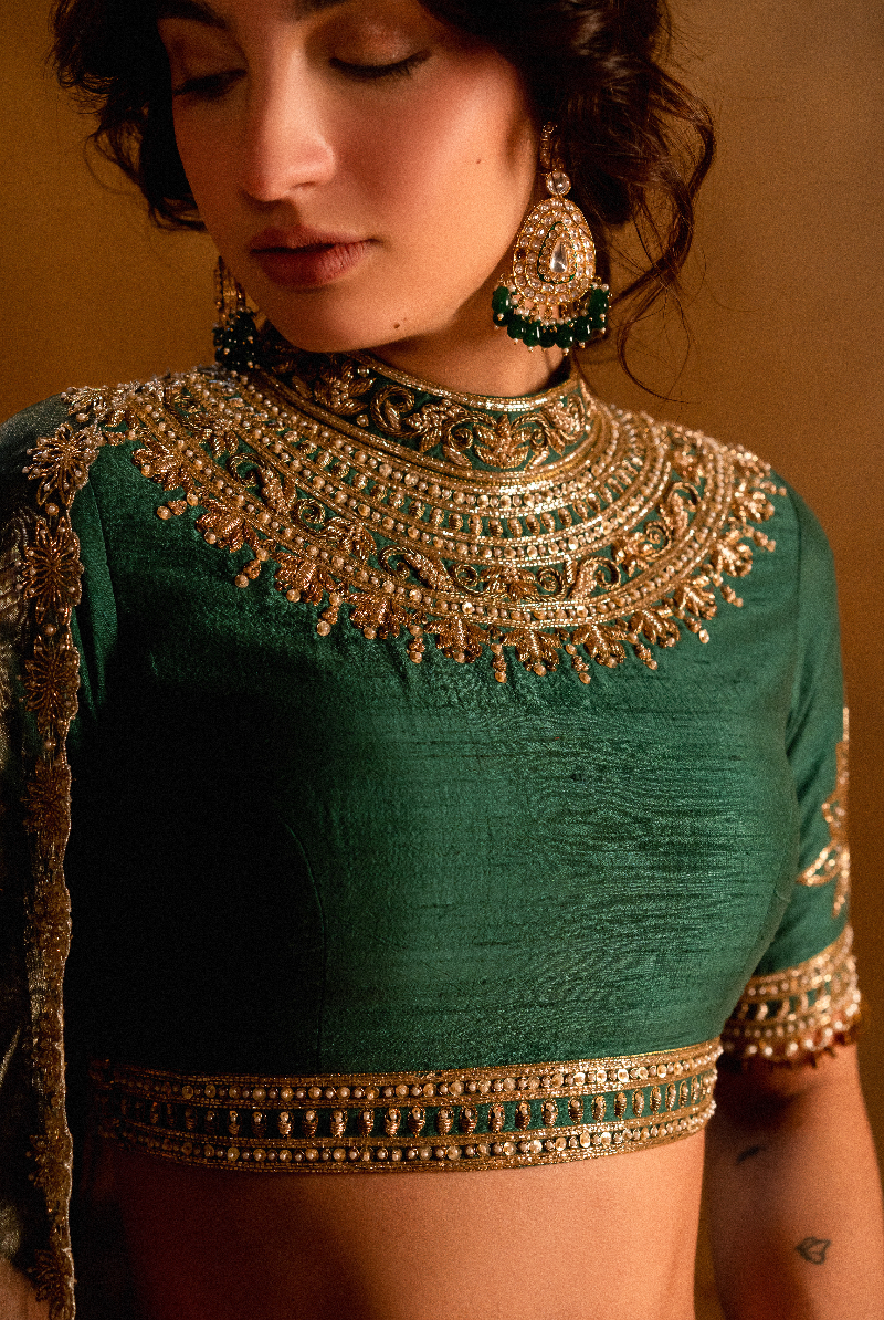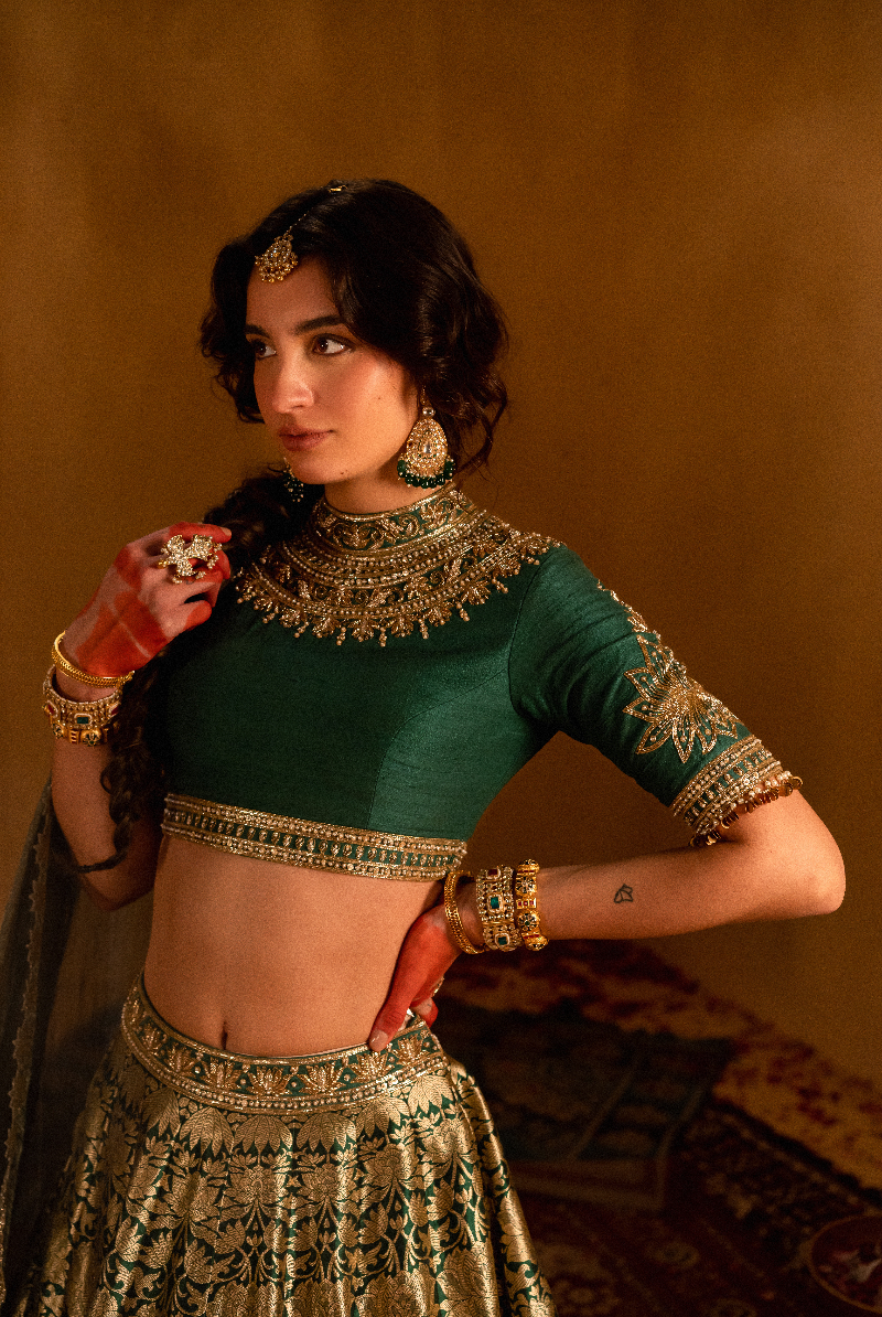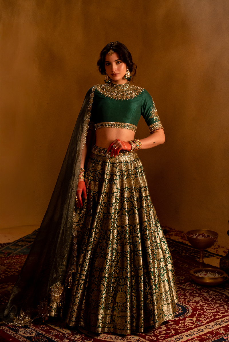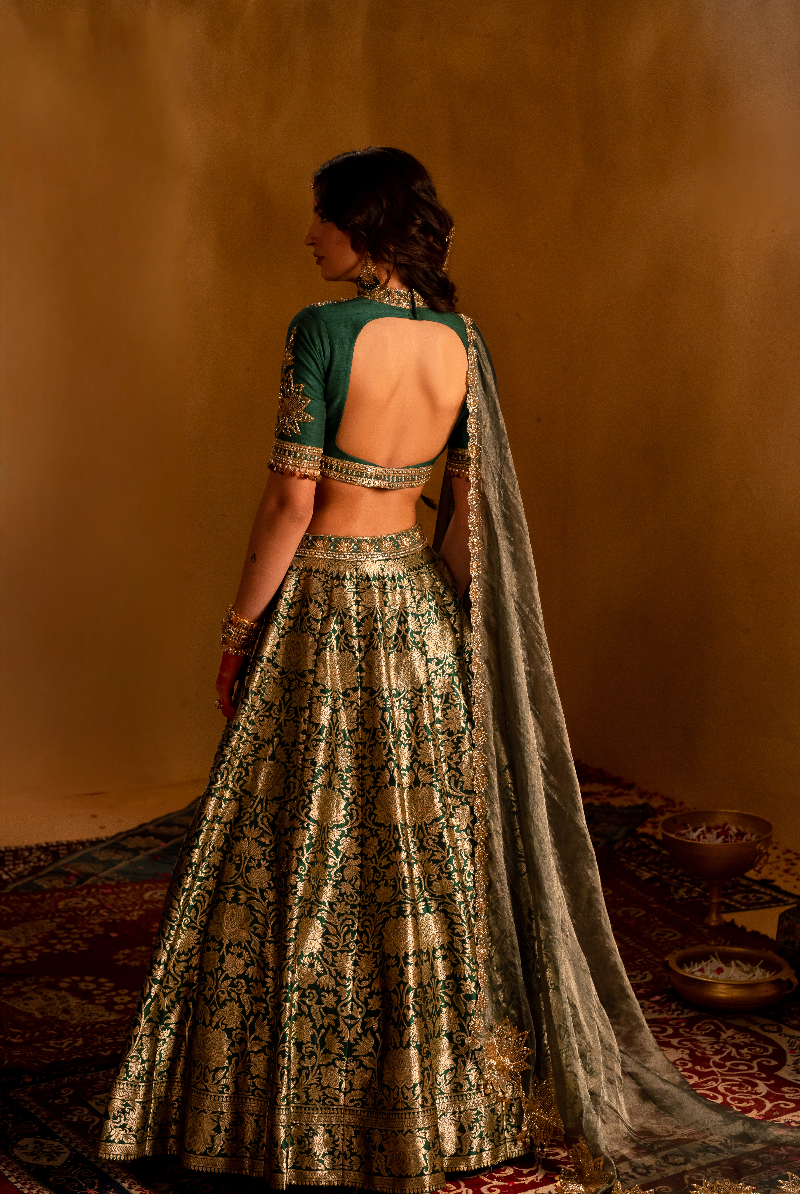 Dark Green Banarasi Lehenga set