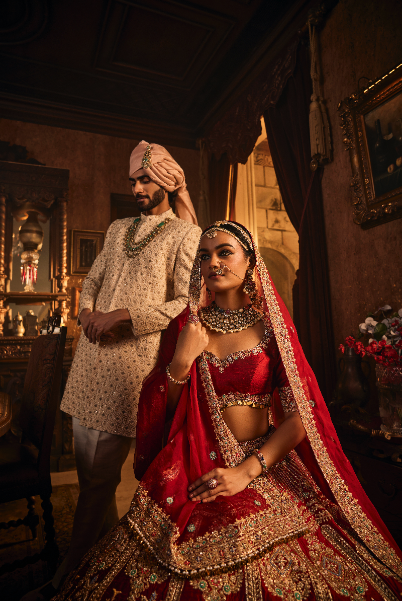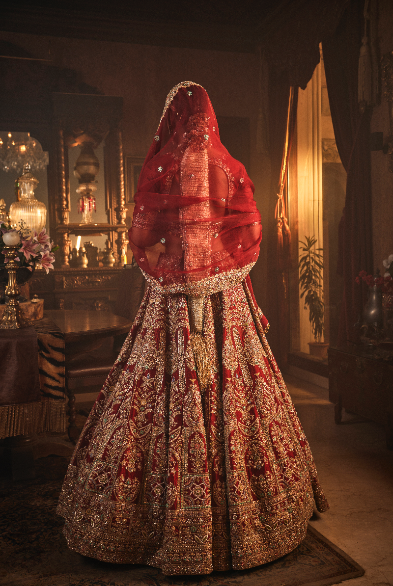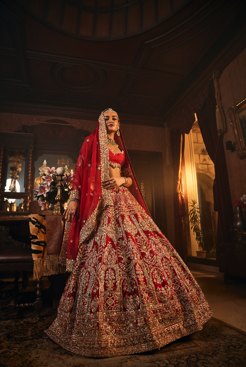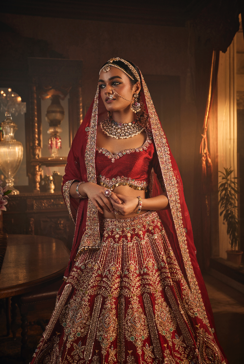 DILNAWAZ, Maroon red lehnga set in zardosi , resham work.