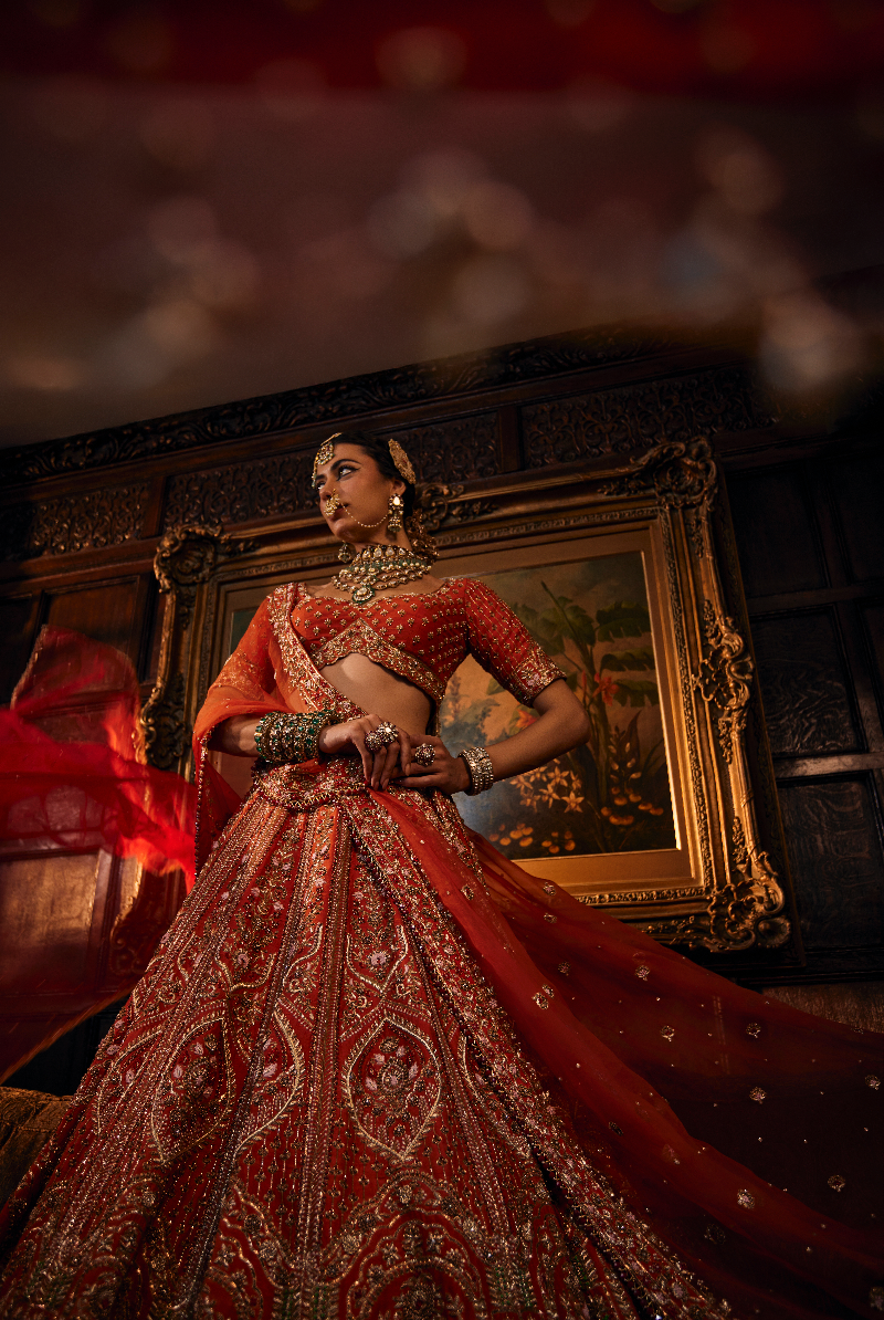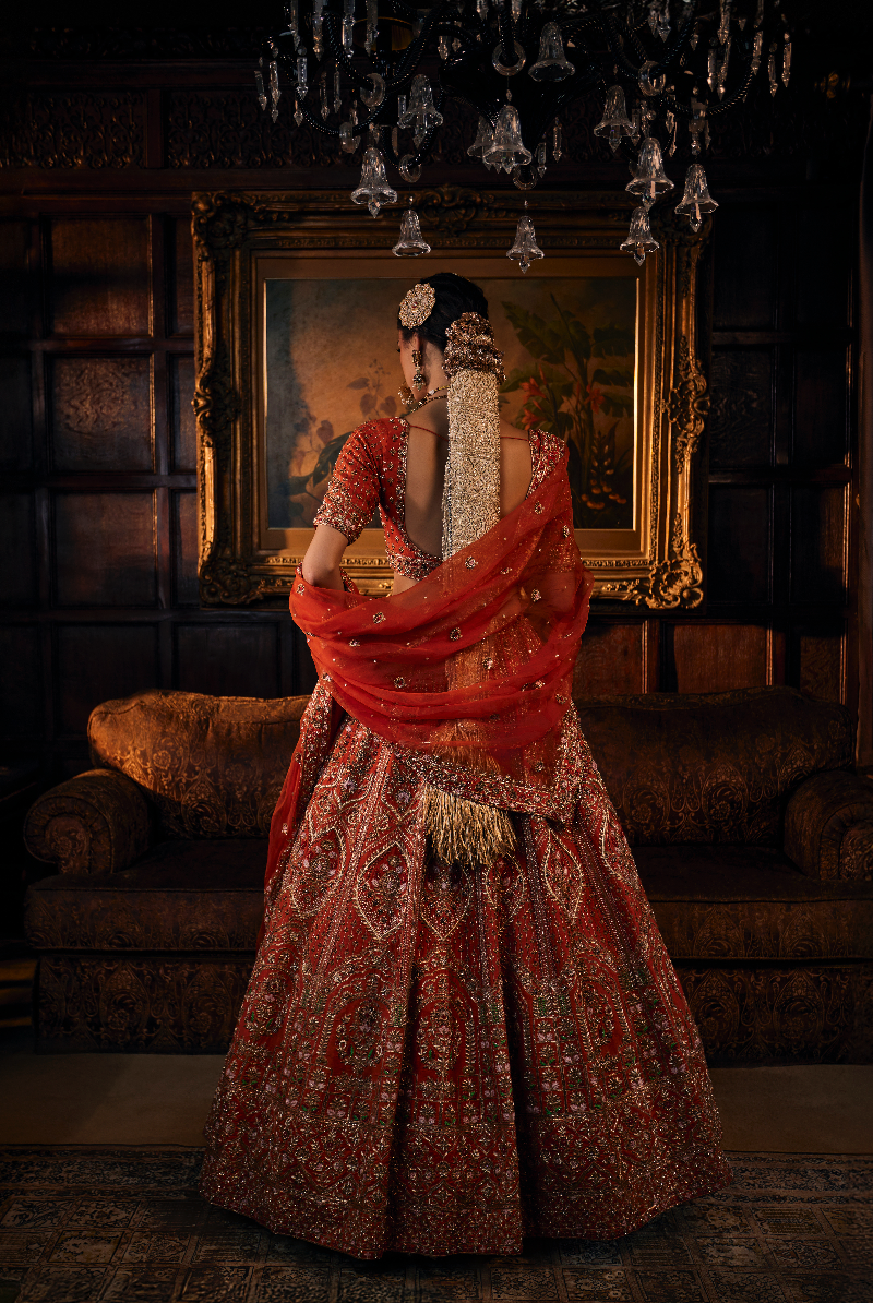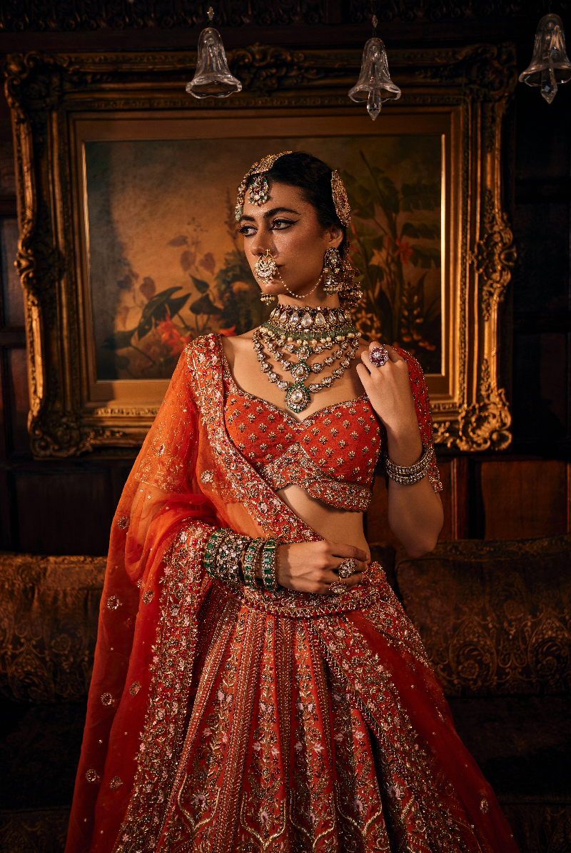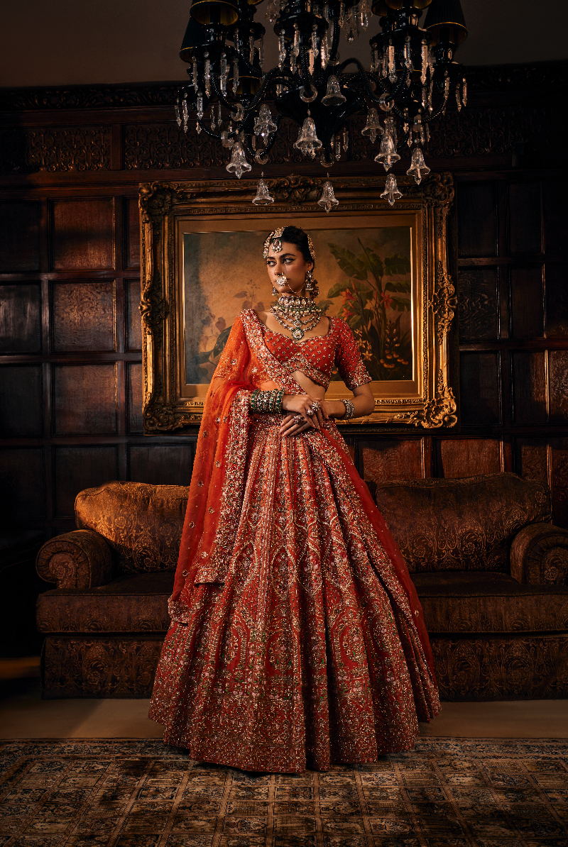 Zangnuma, Hand embroidered Raw Silk lehnga set in zardosi and resham work.