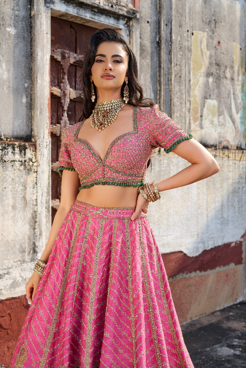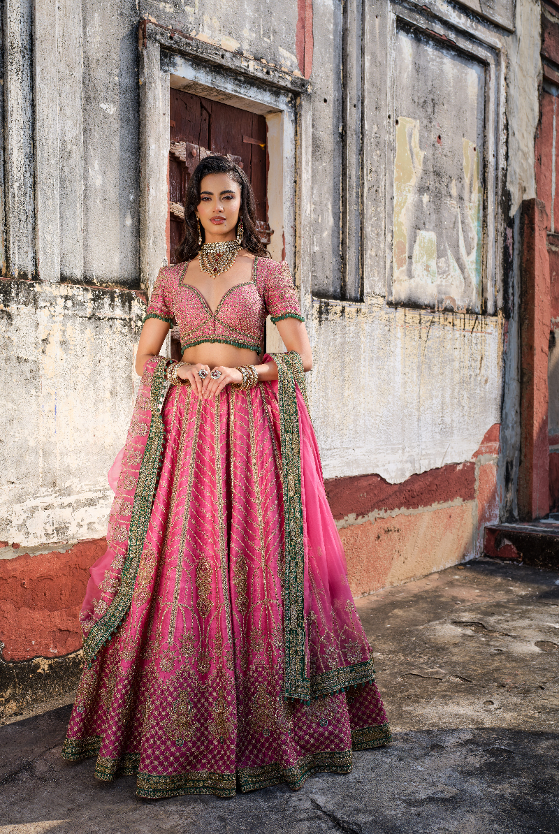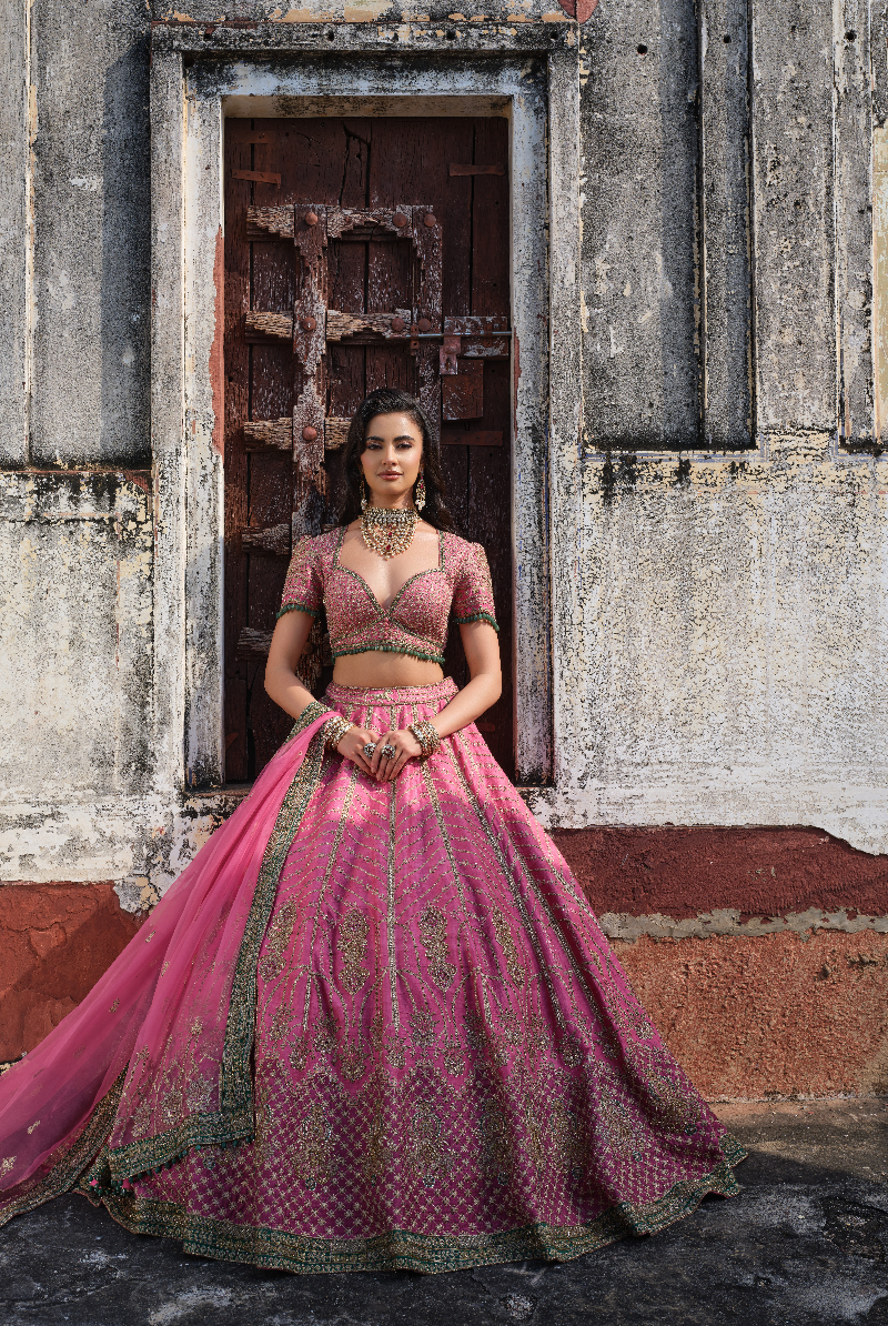 Wine To Pink ombre Hand Embellished Lehenga Set